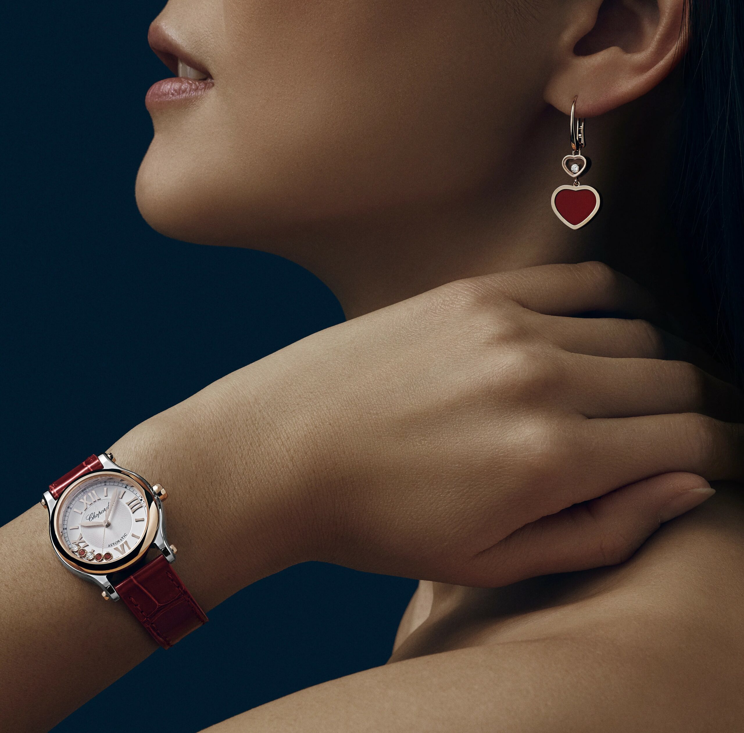 The Happy Sport 30 mm combines ethical rose gold, Lucent Steel™, rubies, and diamonds, and is powered by an automatic mechanical movement developed specifically for women’s watches. Both technically accomplished and delightfully expressive, it reminds us that love, like diamonds, is meant to move and shine.