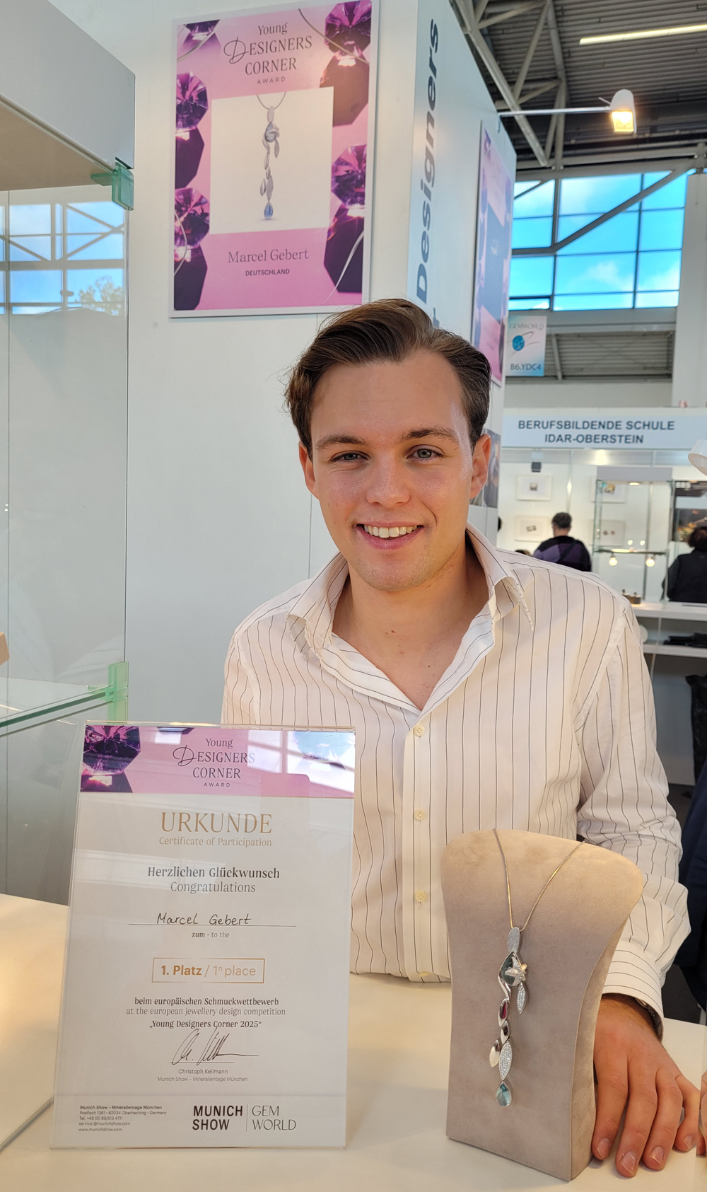 Puisque mes bijoux ont été si bien reçus, je suis extrêmement motivé à créer davantage de pièces, voire des pièces uniques. Mon carnet de croquis déborde de dessins et d’idées. Je cherche également à participer à d’autres concours. Au salon, j’ai découvert de nouvelles pierres, gravures et techniques, qui m’ont encore plus inspiré et encouragé à explorer de nouvelles pistes. J’ai aussi reçu de précieux conseils pour développer ma marque, et j’ai hâte de voir où ce voyage me mènera. J’aimerais profiter de cette occasion pour exprimer ma sincère gratitude au jury, aux organisateurs du salon et à toutes les personnes qui m’ont soutenu. Ce fut une expérience unique et un véritable enrichissement personnel.