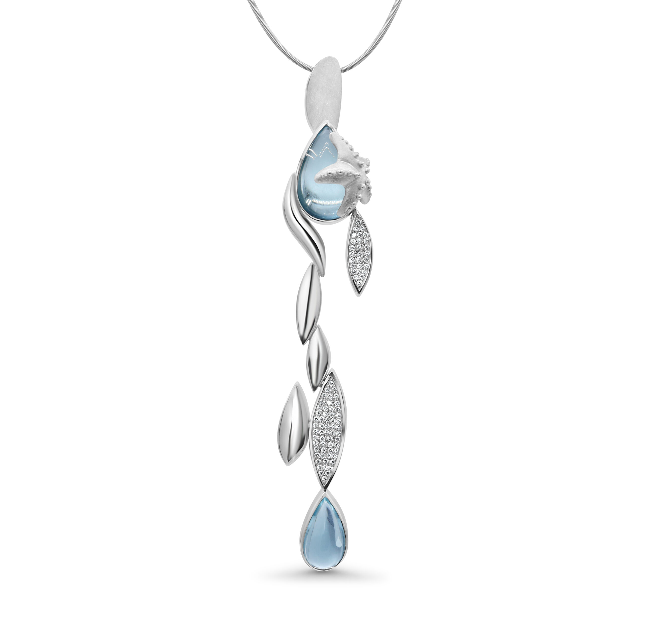 J’ai esquissé plusieurs idées, mais pour être honnête, la première idée a été la pièce “Spirit of the Ocean.” Elle m’obsédait et je voulais la réaliser immédiatement. J’ai alors cherché les pierres précieuses et les diamants appropriés. Les cabochons d’aigue-marine étaient parfaits — exactement la bonne couleur et d’une qualité exceptionnelle. Ensuite, j’ai mis mon savoir-faire à l’épreuve : il a fallu résoudre des problèmes techniques, et, étape par étape, la pièce est devenue un bijou dont je suis vraiment fier.