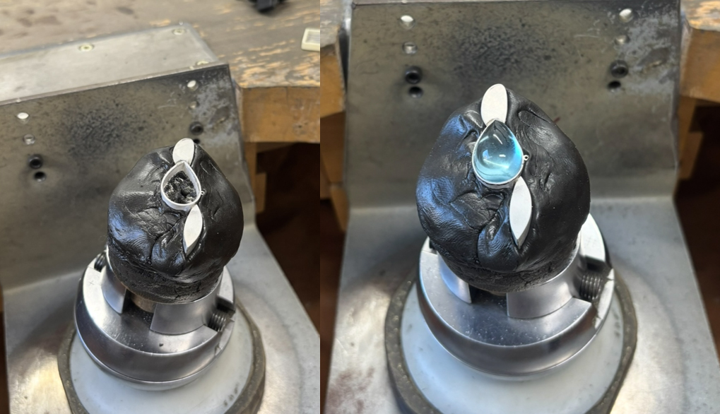 J’ai grandi dans un petit village près d’Idar-Oberstein et, comme c’est souvent le cas dans cette région, presque tout le monde a un lien avec les pierres précieuses et la joaillerie. C’était aussi le métier de mon grand-père, qui m’a initié très jeune à ces matériaux à travers son entreprise. J’ai toujours su que je travaillerais un jour avec ces matières extraordinaires. Après avoir obtenu mon diplôme en 2021, je voulais commencer un apprentissage en orfèvrerie, mais la pandémie de COVID et le chômage partiel ont rendu cela impossible. J’ai donc entamé des études en administration des affaires, avec une spécialisation en marques et produits de luxe. En 2023, mon envie d’apprendre le savoir-faire artisanal s’est renforcée, et j’ai décidé de suivre une formation de sertisseur de pierres précieuses en parallèle de mes études.