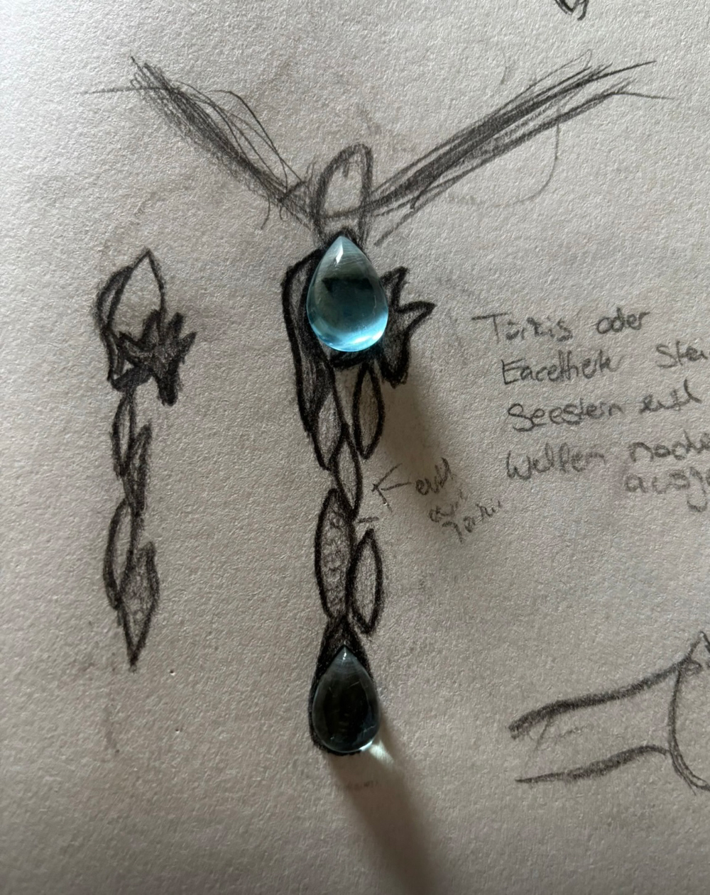 La mer a pour moi une magie très particulière, surtout à Ibiza. J’y retourne chaque année, car l’île ne cesse de m’attirer. Ce jeu entre la nature, la lumière, l’eau et cette énergie si spéciale m’inspire à chaque fois. Les vagues symbolisent pour moi le calme et la profondeur, un sentiment de liberté, et en même temps, Ibiza possède cette scène vibrante et festive, pleine de mouvement et de contrastes. J’essaie souvent de combiner ces éléments et d’en faire des bijoux.