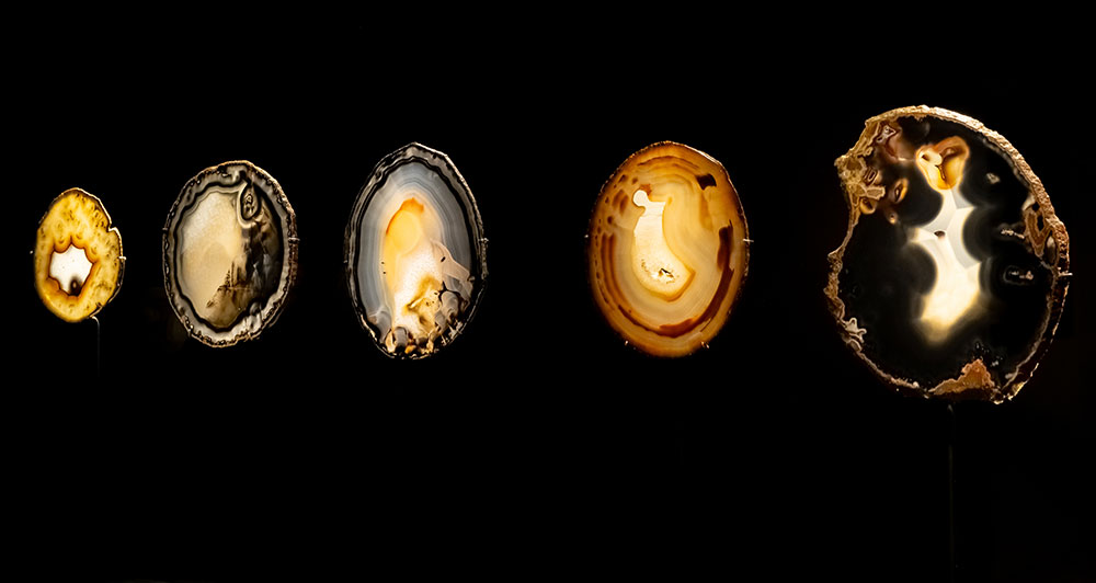 En parcourant les salles de L’ÉCOLE, le visiteur découvre des pierres qui évoquent des ciels lointains, des falaises, des mers en mouvement, des silhouettes fantomatiques ou des paysages cosmiques. Modelées par la terre pendant des millions d’années, ces “images minérales” jouent avec nos perceptions. Caillois les considérait comme des œuvres de la nature artiste — Natura pictrix — capables de rivaliser avec les peintres, les graveurs, et même les poètes.